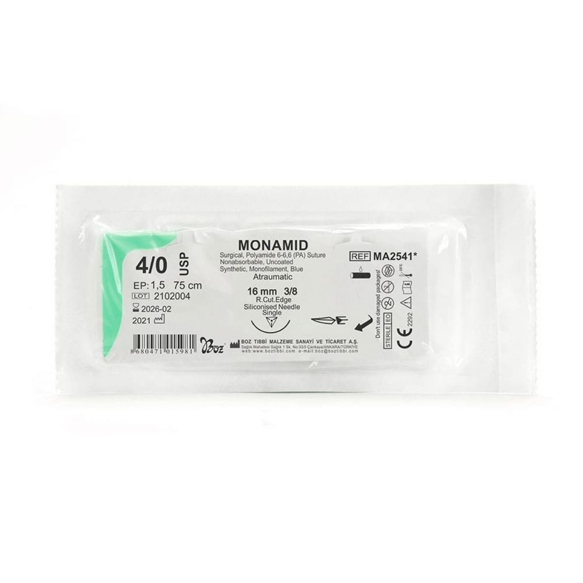 Monamid sütürler, USP 10/0 – USP 2 araliginda, 10 santimden 150 santime kadar çesitli uzunluklarda, paslanmaz çelik igneli veya ignesiz olarak üretilmektedir.