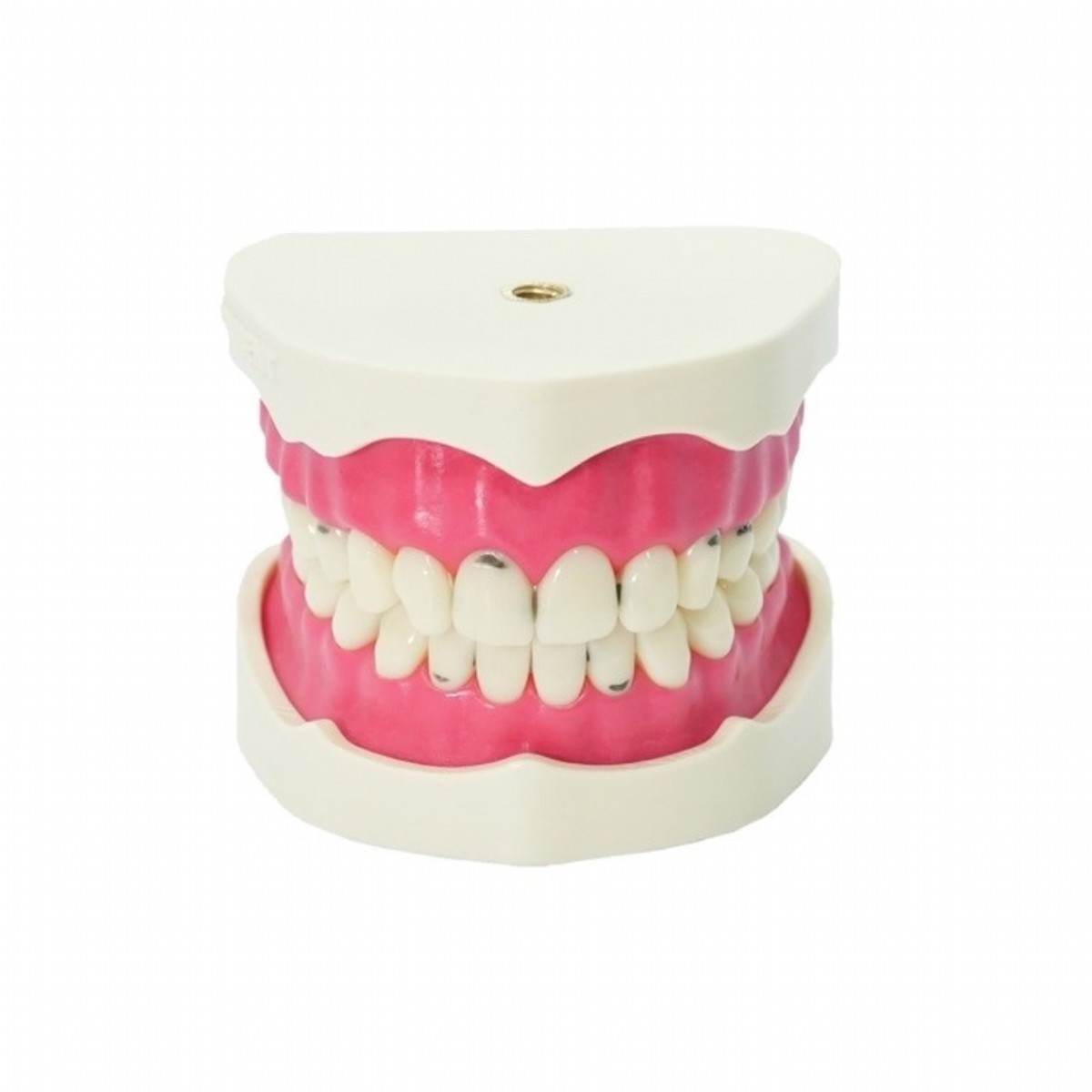 Toplamda 28 disten olusan bu model, 14 üst ve 14 alt çeneden meydana gelmektedir. Disler, anatomik yapisina uygun olarak tasarlanmis olup, pulpa odasi ve kanal içermektedir. Dis yüzeyindeki çürükler, frez kullanilarak temizlenebilir ve kompozit, amalgam ya da CIS malzemeleriyle restorasyon yapilabilir. Disler, gerektiginde çikarilip degistirilebilir. Çene altindaki somun sistemi sayesinde, model fantoma güvenli bir sekilde sabitlenebilir.