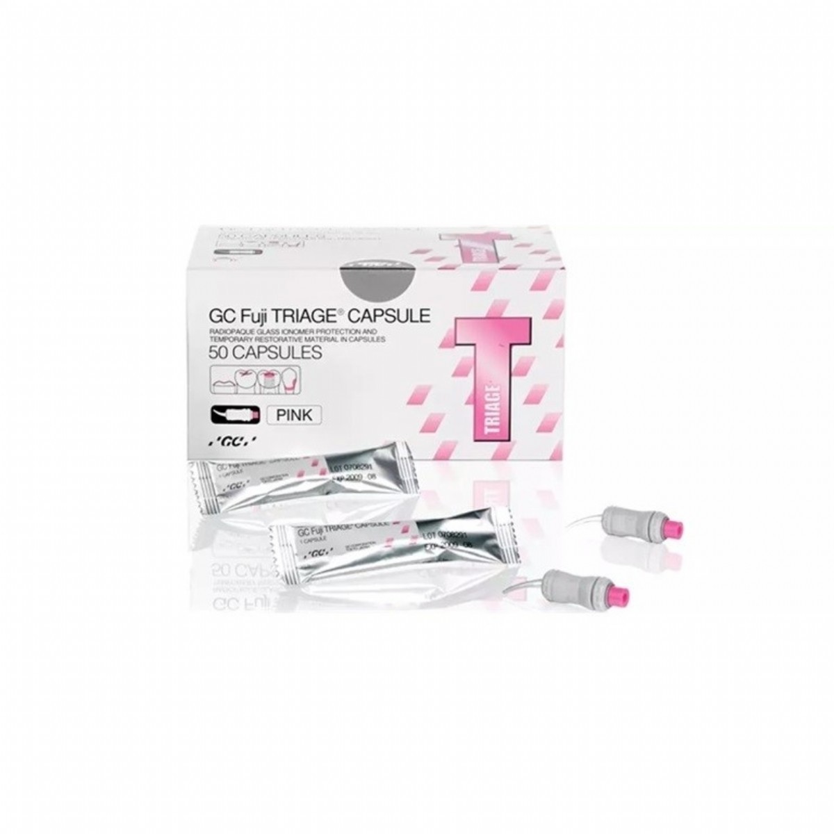 Özellikle yeni çikmakta olan (kismen) azi dislerin tedavisinde mucizeler yaratan GC Fuji Triage, chemasal tutunma özelligi sayesinde asitlenmeye veya herhangi bir adetif kullanimina ihtiyaç duymaz. Hem beyaz hem de pembe renk seçeneklerine sahip bu ürün, düsük viskozite ve kolay uygulanabilirligi ile de ön plana çikar. Istege bagli çift sertlestirme yöntemi için görünür isikli sertlestirme ünitesi kullanilabilir, böylece su kaybina karsi erken koruma saglanir.