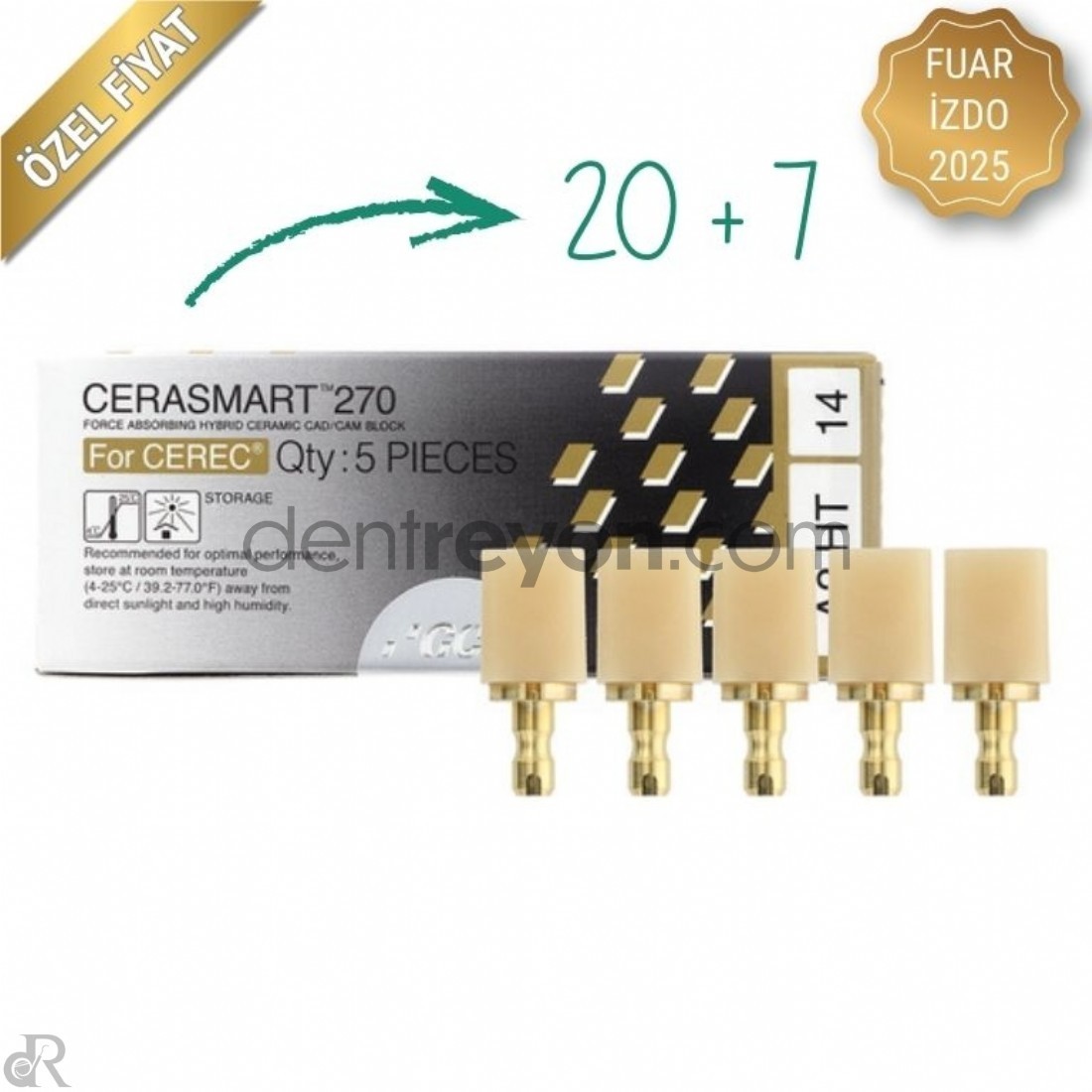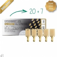 CERASMART270, restoratif diÅŸ hekimliÄŸinde ileri teknolojiyi temsil eden, güç emici hibrit seramik CAD/CAM bloktur. Hem estetik hem de dayanıklılık saÄŸlayan bu malzeme, yüksek kırılma enerjisi ve esnekliÄŸi ile çiÄŸneme kuvvetlerini tamponlayarak uzun ömürlü restorasyonlar sunar.